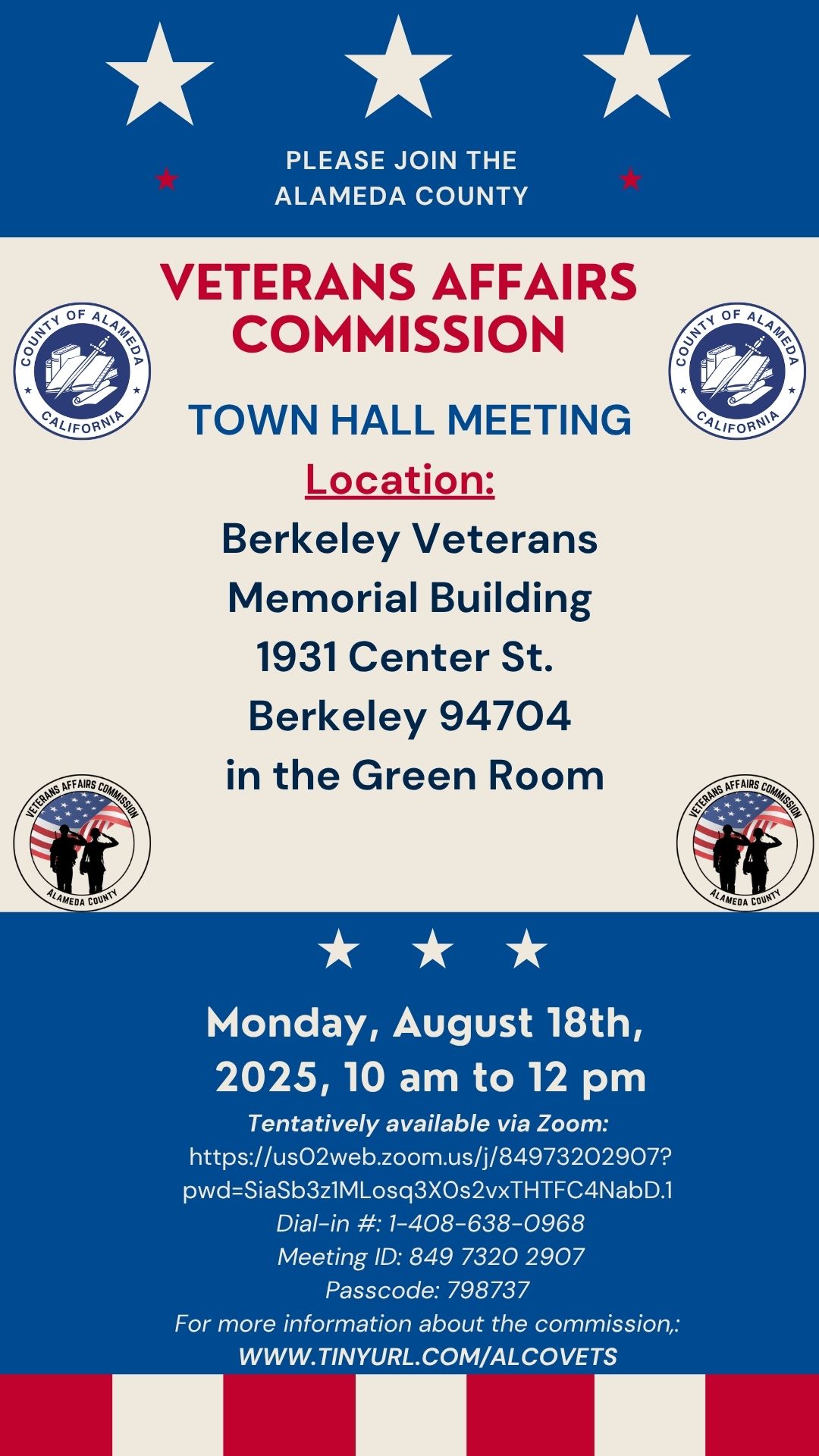 For better engagement and inclusion of the Veteran community, the Commission holds its general meetings at various locations across Alameda County.